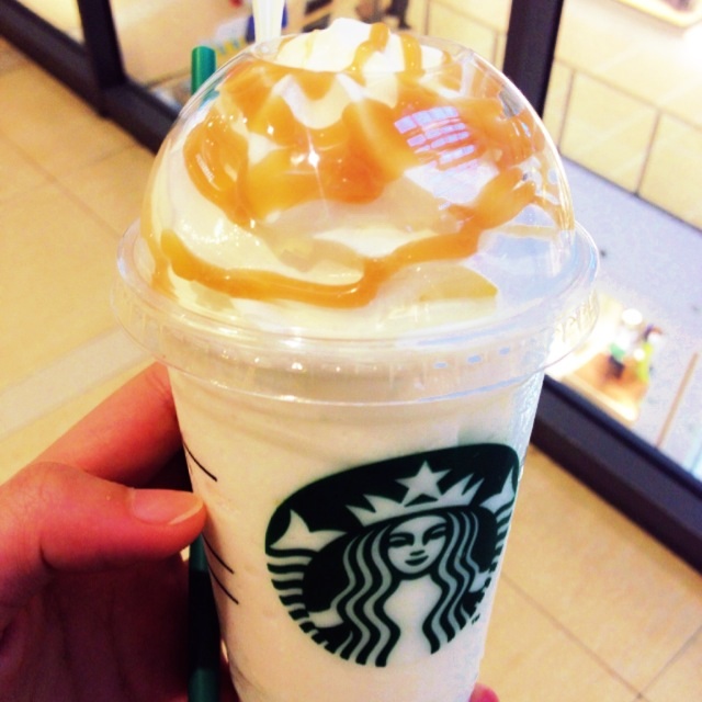 「バニラクリームフラペチーノのショートの〜バニラ抜きの〜ホイップ多めの〜キャラメルソース追加の〜キャラメルソースも多め!」