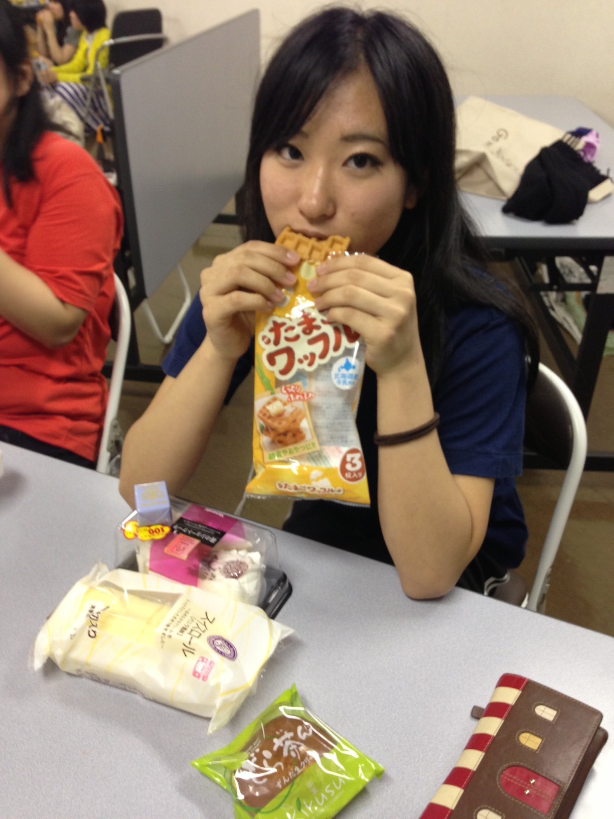 なごさんのごはん?(写真参照)はワッフル、スイスロール、あんじぇからもらったミルフィーユ、ゆみからもらったどら焼き、そして極めつけは2切れ入りのショートケーキ…